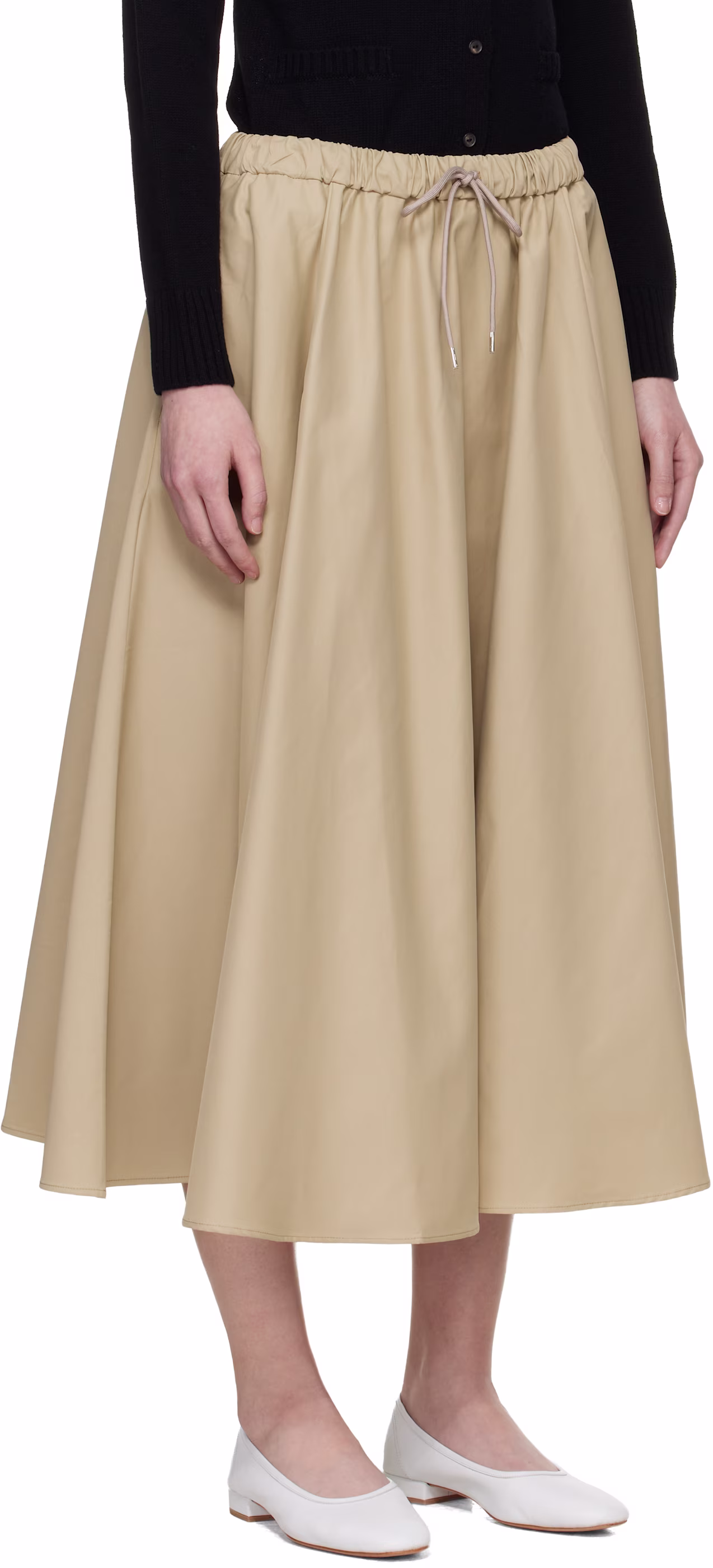 Description: Experience the peak of modern feminine authority with the Camel Zenith Technical Midi Skirt. Defined by its sophisticated camel palette and premium high-density cotton-nylon technical satin, this piece offers a statuesque and creative take on contemporary archival utility wear. The architectural construction features provocative paneled lines and a precision-fitted elasticized waistband with an adjustable drawstring that ensures exceptional movement while maintaining a polished designer aesthetic. Crafted with structural integrity and functional two-pocket styling, it serves as a timeless foundational statement for a curated high-fashion midi skirt wardrobe.